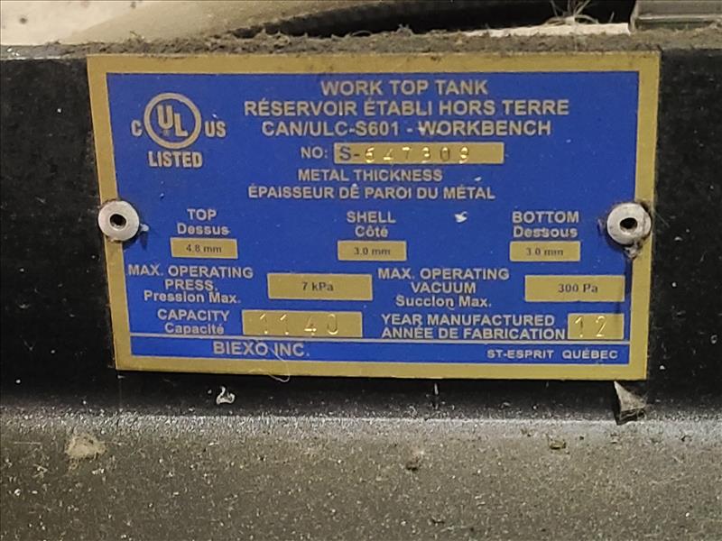 Alemite Work Top Bench Tank, S/N.S-647309, 1140 lbs capacity