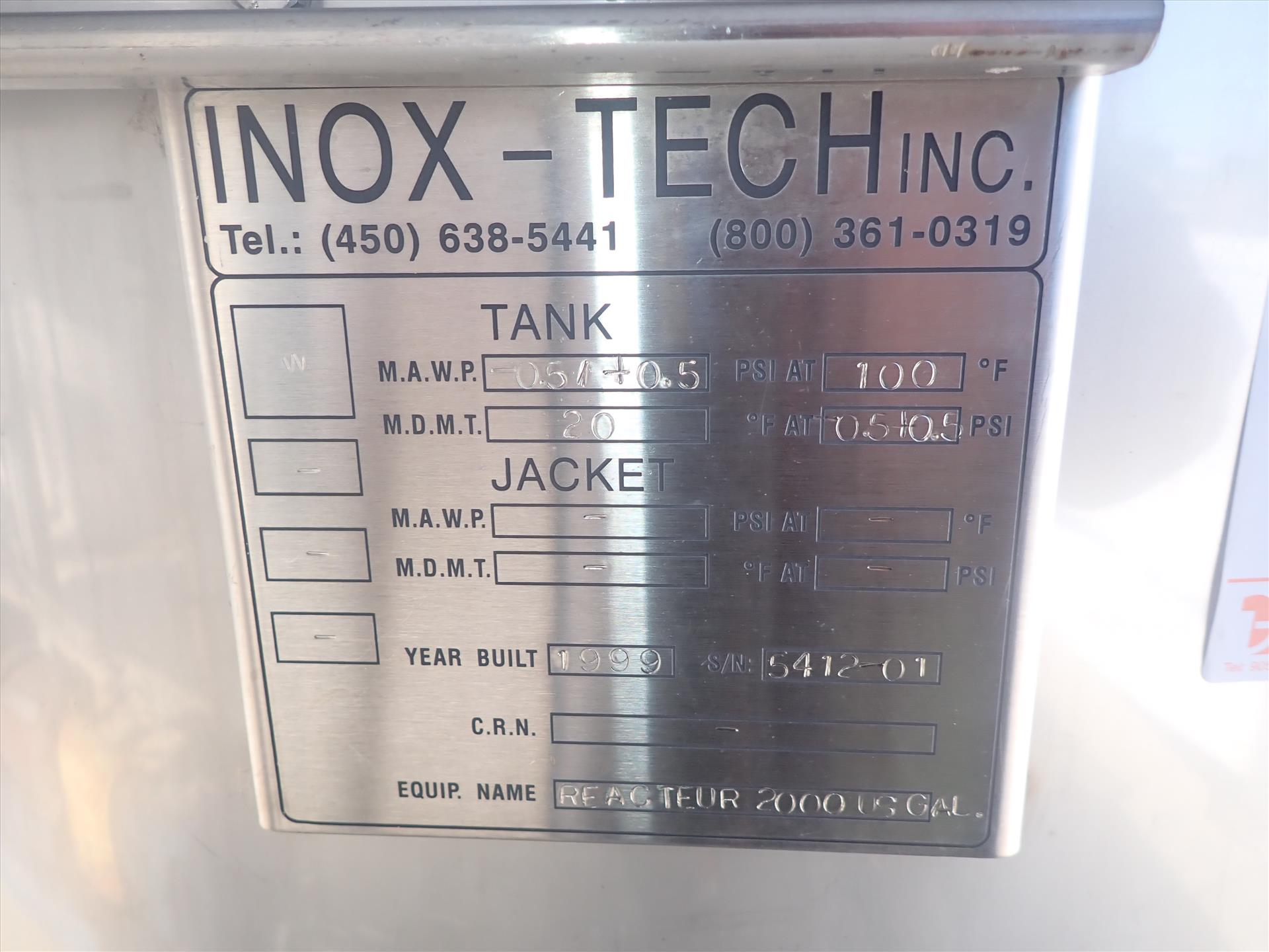 Inox-Tech Stainless Steel Tank, mod. Reacteur2000, ser. no. 5412-01, approx. 2000 gal.