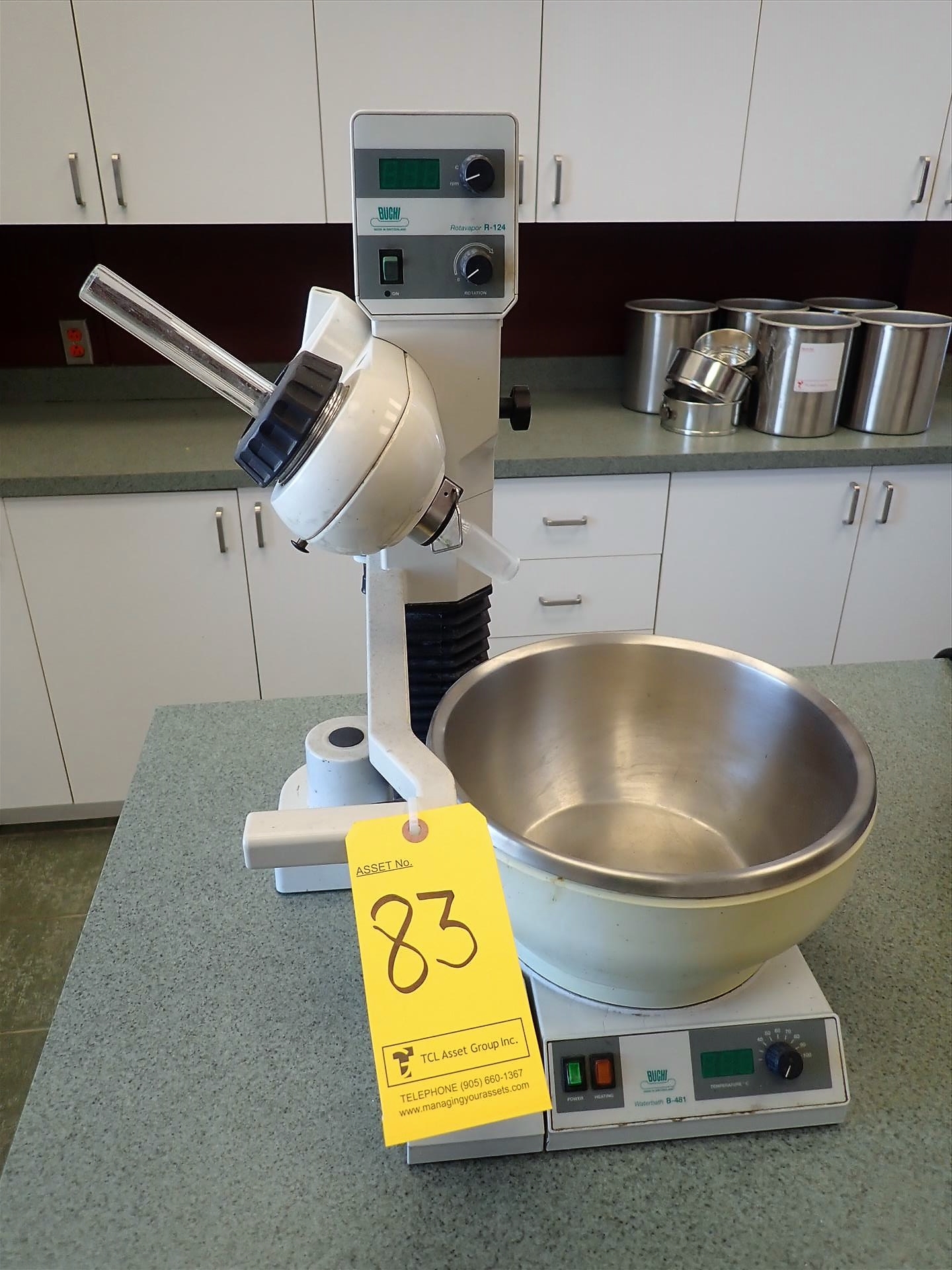 Buchi Rotovapor Rotary Evaporator, mod. R-124, ser. no. 10006623 w/ B-481 water bath