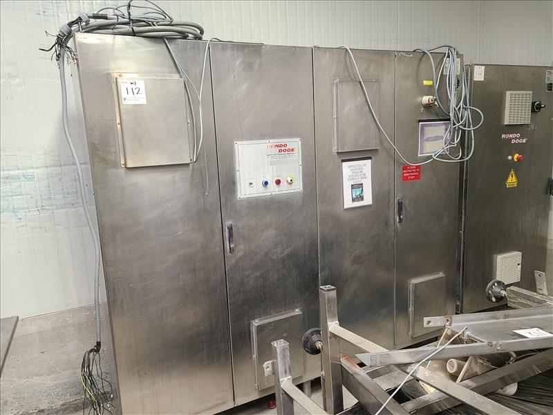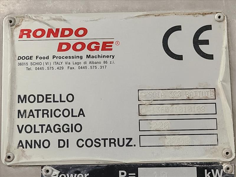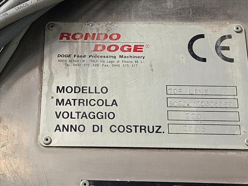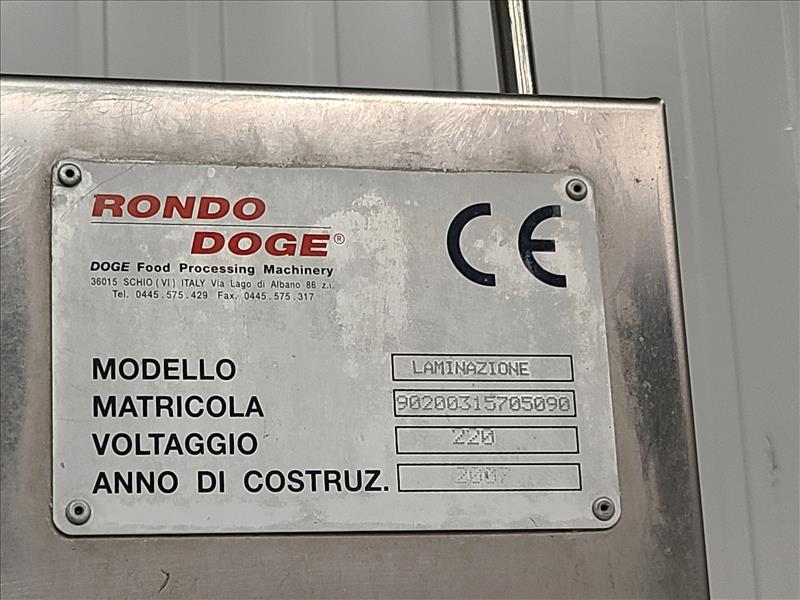 Rondo Dough Line, includes: (3) 36 in. satellite/callibrating rollers, guillotine/stamper, slicing station, top and bottom flour dusters, misc. conveyor and Top Line control panel, S/N.90200110305050, Laminazione control panel, S/N.90200315705090, and Cesioa 300 Battute control panel, S/N.D-136071010108
