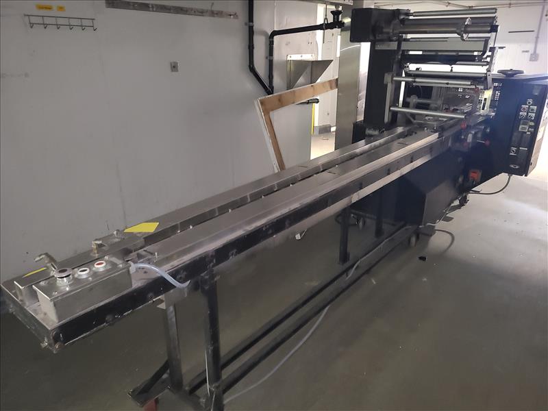 Doyboy Flow Wrapper, model Mustang IV, S/N.94-16333, 90 cpm speed, w/7 in. wide crimp seal jaws, 145 in. long lugged chain infeed conveyor