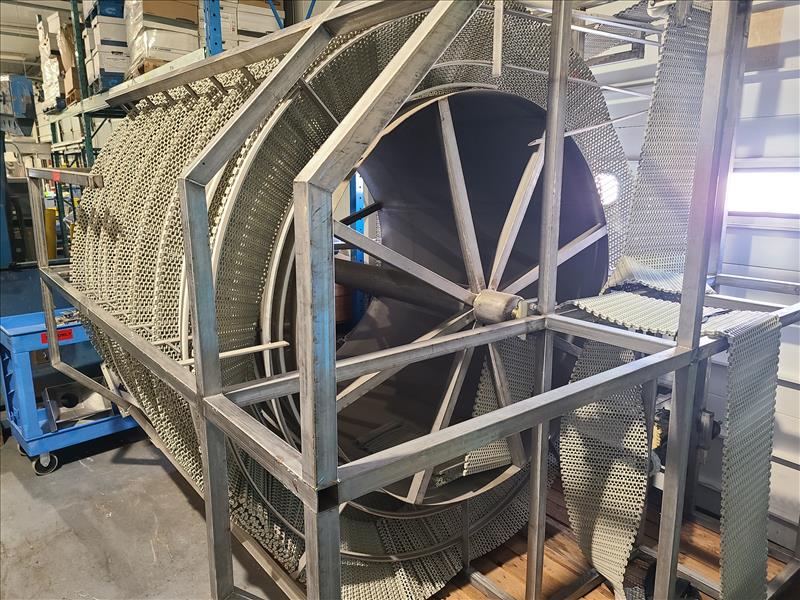 Spiral power conveyor, plastic belt, approx. 10 in. x 7 ft. high x 7 ft. dia.