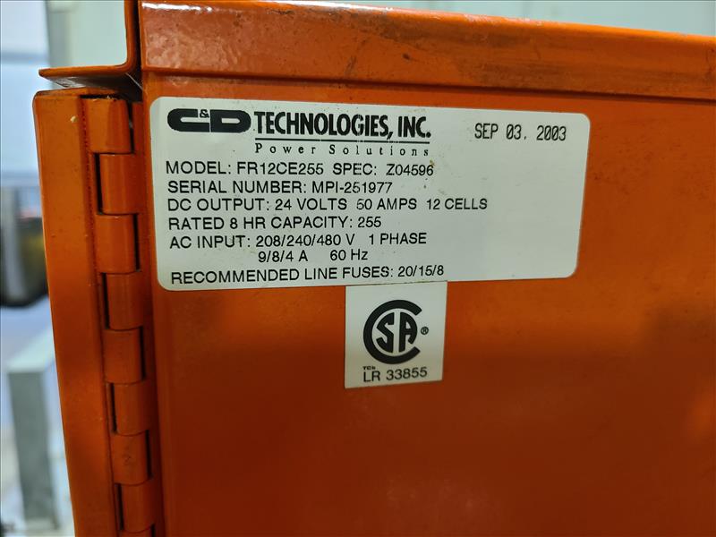 C&D Ferro Five FR Series Forklift Battery Charger, model FR12CE255, S/N.MPI-251977, 24V
