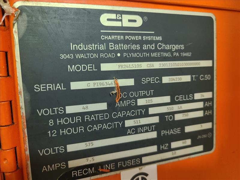 C&D Ferro Five FR Series Forklift Battery Chrger, model FR24L510S, S/N.GPI963463, 48V