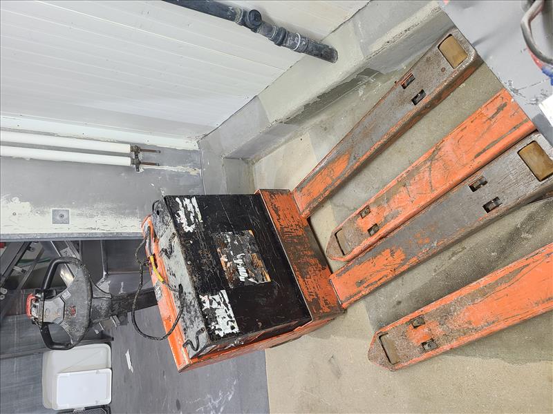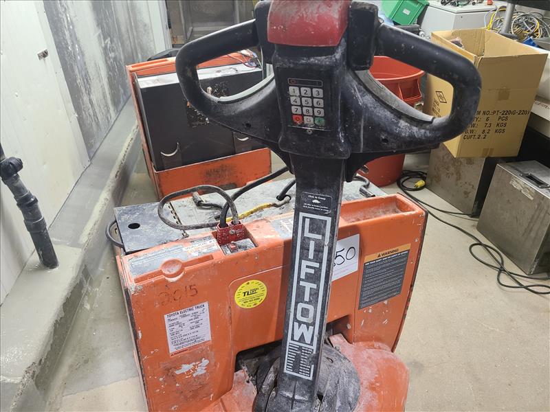 Toyota Electric Walkie Pallet Jack, model 7HBW23, S/N.7HBW23-57624, 4500 lbs. cap., 24V, integrated charger (Battery Replacement Needed)