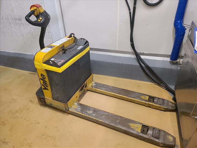 Yale Electric Walkie Pallet Jack, model MPB040-EN24T2748, S/N.B827N53535L, 4000 lbs. cap., 24V, integrated charger (Battery Replacement Needed)