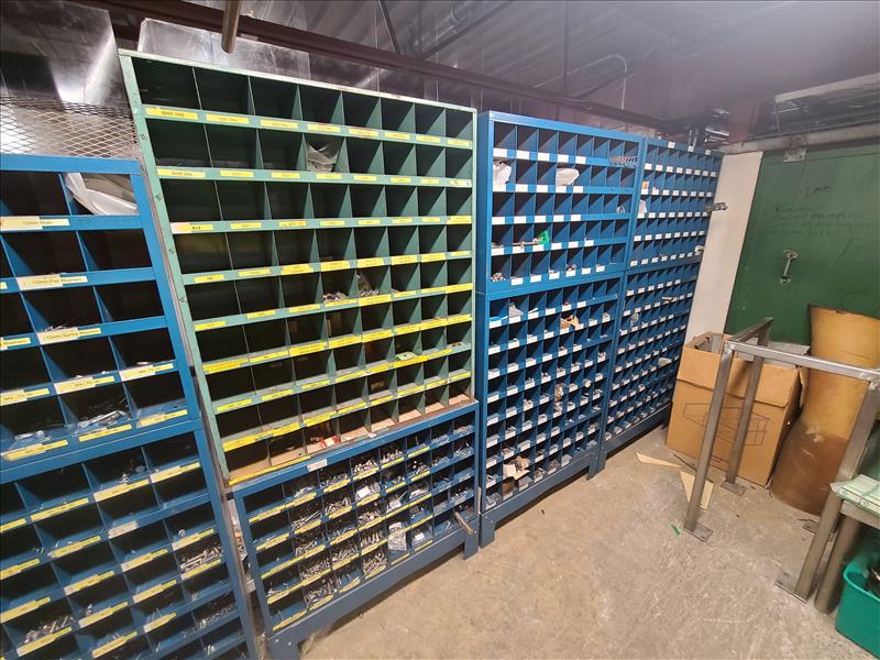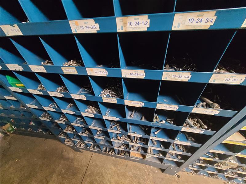 (11) Pigeon Hole Racks w/contents (nuts, bolts etc.)