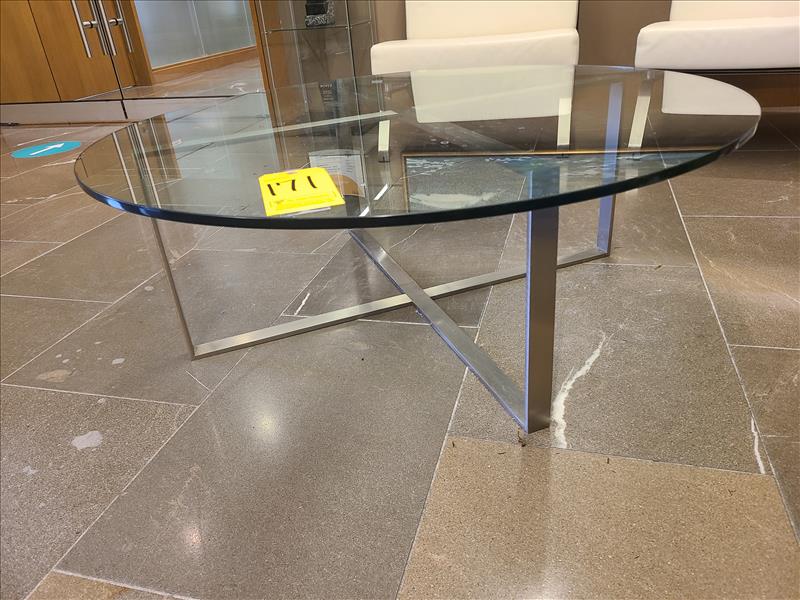 Tempered Glass Table, w/ s/s base, approx. 42 in. dia (Qty 1) (Floor 3) (Reception Area)