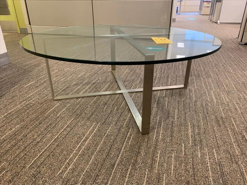 Tempered Glass Table, w/ s/s base, approx. 42 in. dia (Qty 1) (Floor 6)