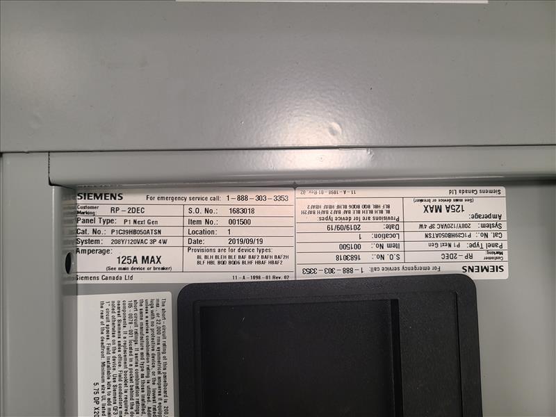 Siemens Breaker Panel, cat. no.P1C39HB050ATSN