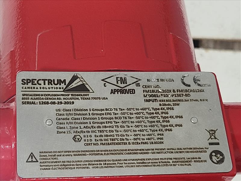Spectrum Explosion-Protected Camera, model F101-P1367-BD, S/N 1268-08-29-2019