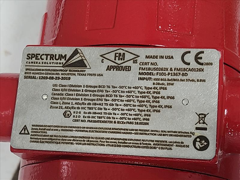 Spectrum Explosion-Protected Camera, model F101-P1367-BD, S/N 1269-08-29-2019