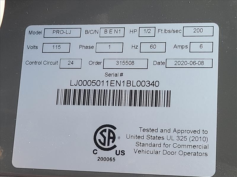 Automatic Roll-Up Door, approx. 120 in. x 124 in., w/ Nice Duty Belt Drive Jackshaft Opener, model Pro-LJ