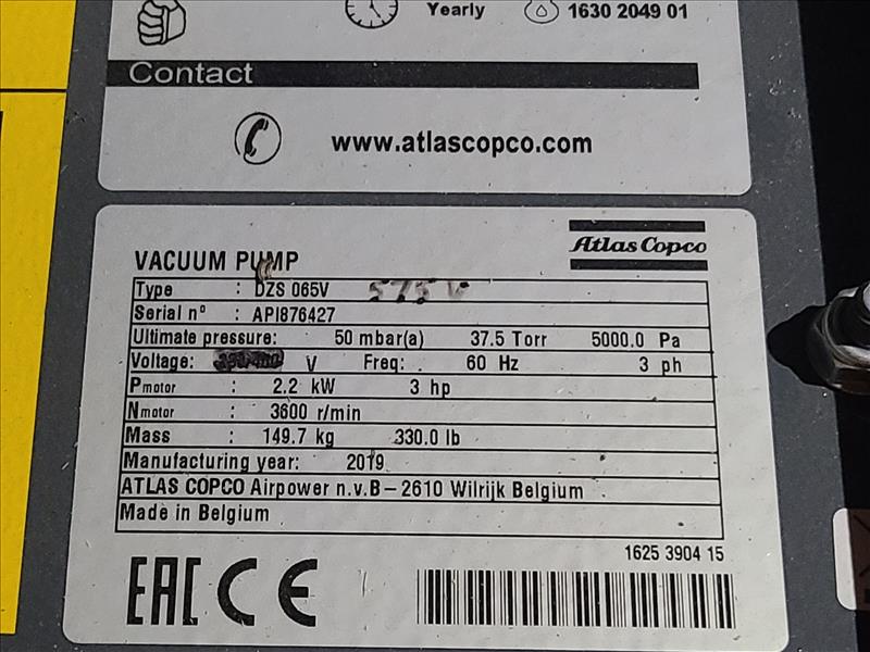 Atlas Copco Dry Claw Vacuum Pump, model DZS065V, S/N AP1876427