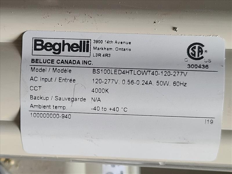 Beghelli Illumina Vapor Tight Lights, model BS100LEDX4HTHOWT40, 120-277V, 100W, 60Hz