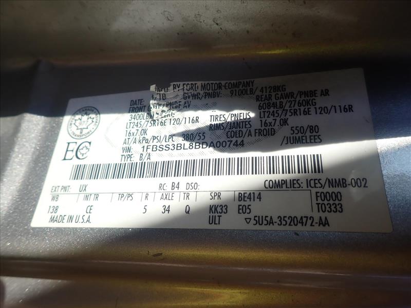 2011 Ford E350 XL SuperDuty passenger van, VIN 1FBSS3BL8BDA00744, approx. 116000 km, 8-passenger (Tag 9041 Loc Rolling Stock)