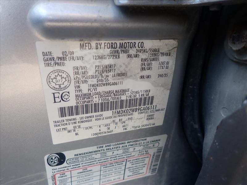 2009 Ford FreeStar SE SUV, VIN 1FMDK02W89GA06111, approx. 165000 km (Tag 9042 Loc Rolling Stock)