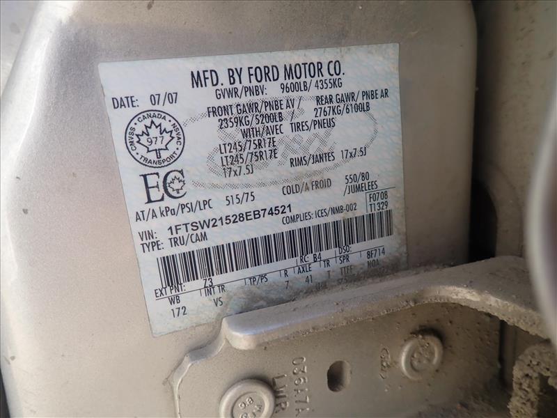 2008 Ford F250 XL SuperDuty pick-up truck, VIN 1FTSW21528EB74521, approx. 103000 km, crew-cab, full box, 4x4 (Tag 9087A Loc Rolling Stock)