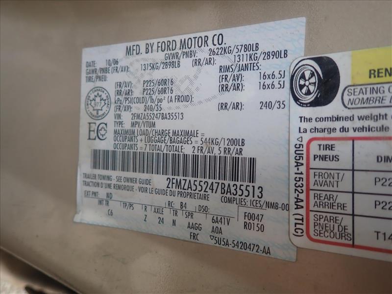 2006 Ford Freestar SE minivan, VIN 2FMZA55247BA35513, approx. 87795 km (Tag 7805 Loc Bones Yard)