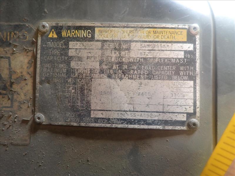 CAT forklift truck, 4000 lbs cap., propane, 3-stage, side-shift, hour meter reads 2963 (Tag 9082 Loc Main Office)