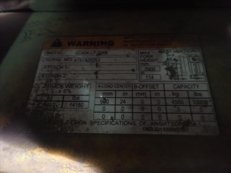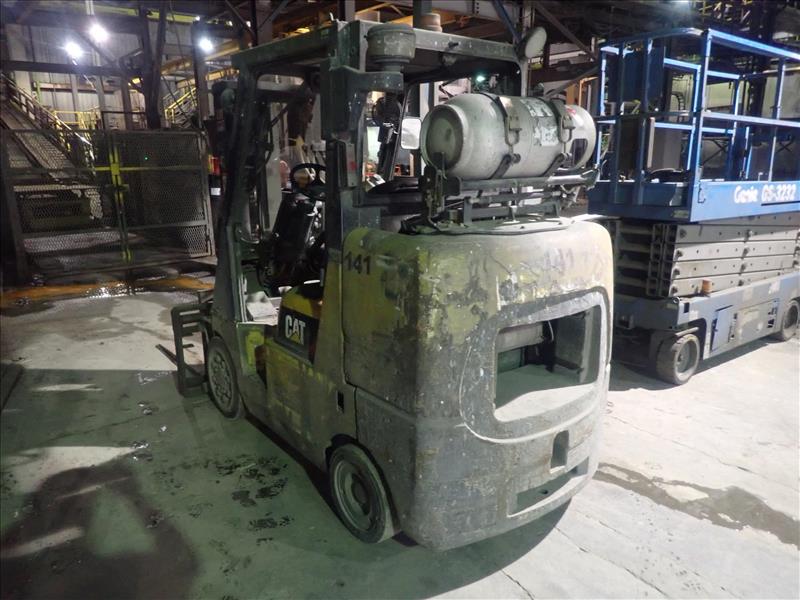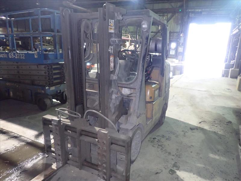 CAT forklift truck, mod. GC45ULPSWB, ser. no. AT87A20253, 10000 lbs cap., propane, 2-stage, 114 in. lift height, hour meter reads 4300 (Tag 9142 Loc Mill)