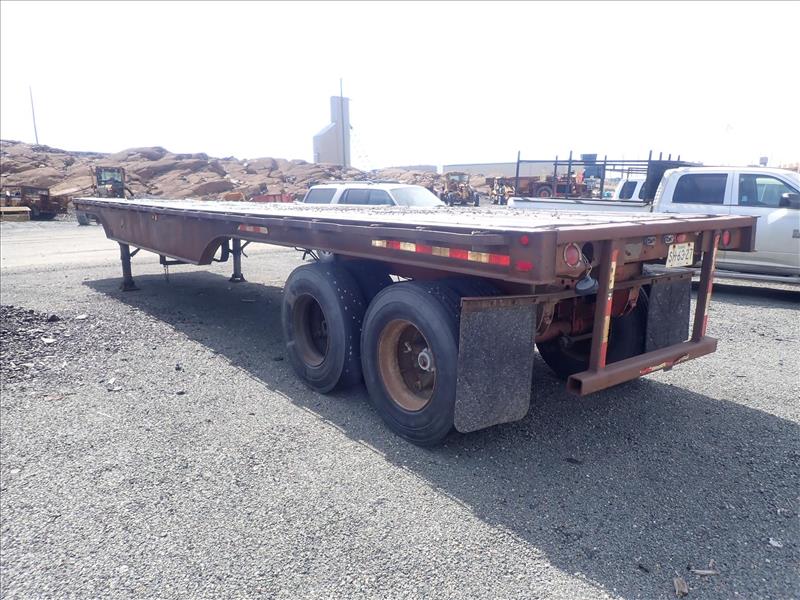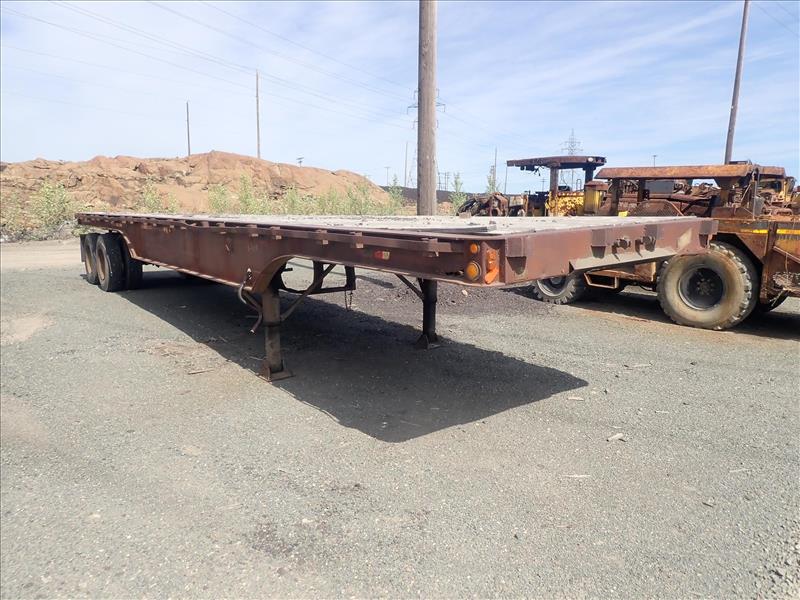 Can-Car flat-deck trailer, tandem-axle, 8 ft x 38 ft deck (Tag 7796 Loc Bones Yard)