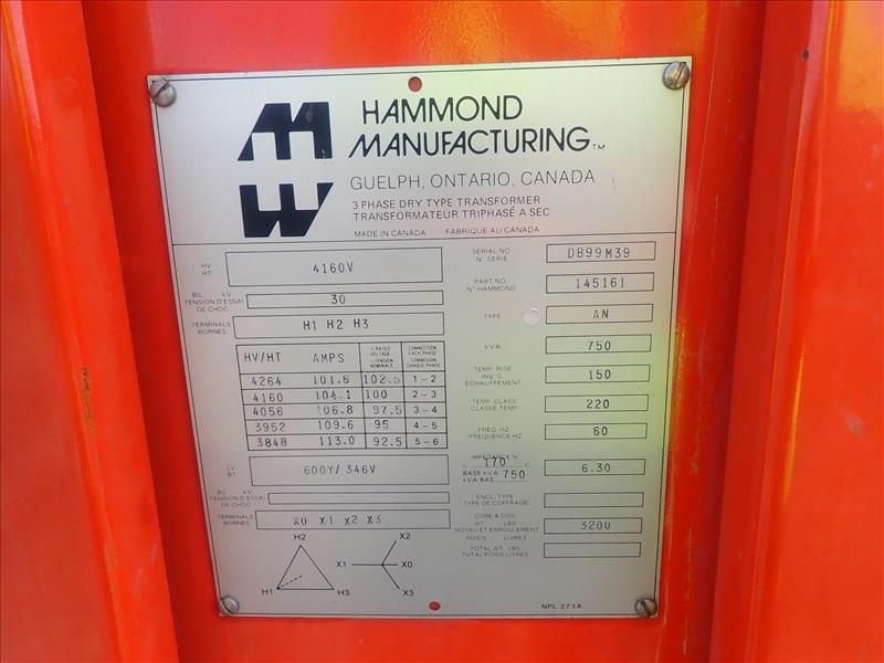 Hammond underground transformer, 750 KVA (Tag 8476 Loc Bones Yard)