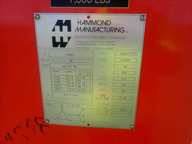 Hammond underground transformer, 750 KVA (Tag 8481 Loc Bones Yard)
