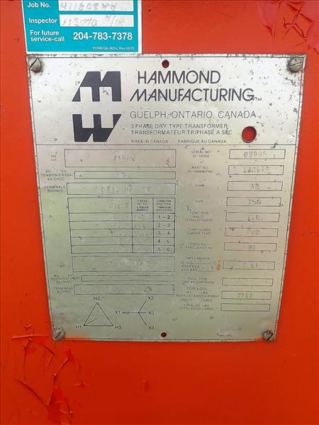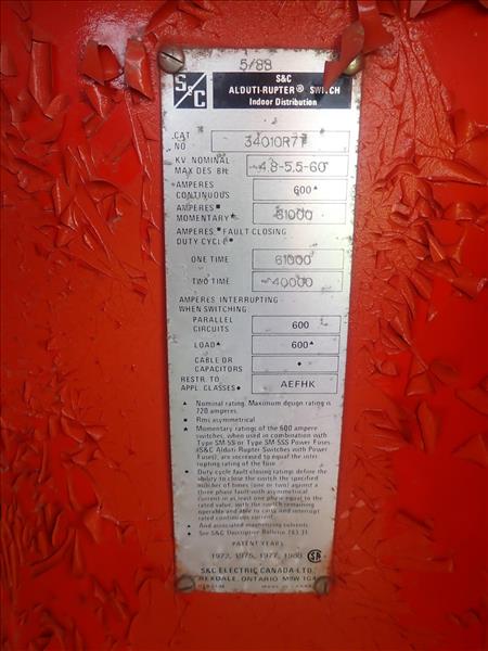 SandC Alduti-Ruptor distribution switch, mod. 34010R7T, 5000V, 61000A w/ Hammond dry-type transformer, 750 KVA (Tag 7800 Loc Bones Yard)