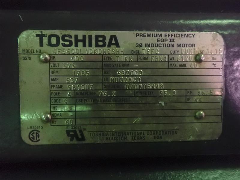 Toshiba induction motor, 600 hp (Tag 8096 Loc WH Modified)
