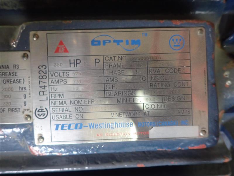Teco Westinghouse induction motor, 350 hp (Tag 8138 Loc WH Modified)
