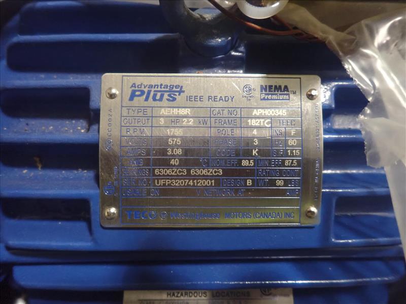 Teco Westinghouse electric motor, 3 hp NEW (Tag 8087 Loc WH Modified)