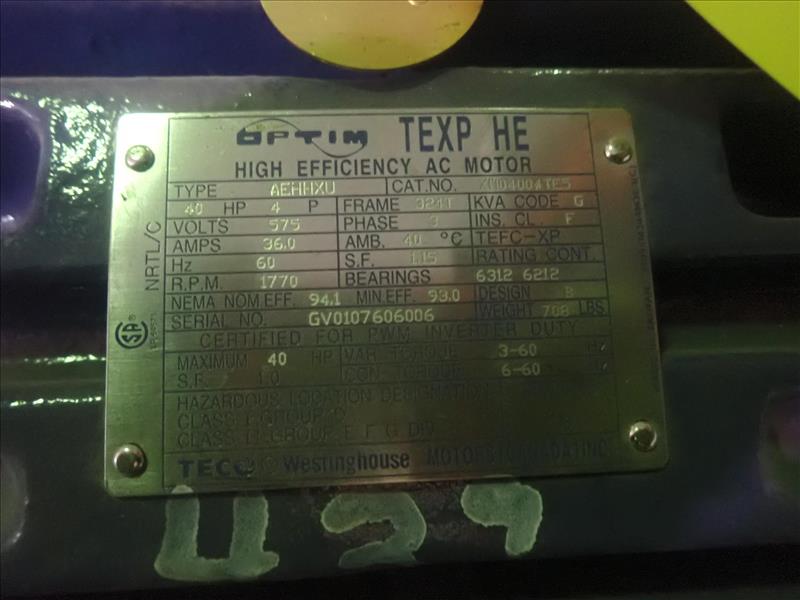 Teco Westinghouse electric motor, 40 hp (Tag 8098 Loc WH Modified)