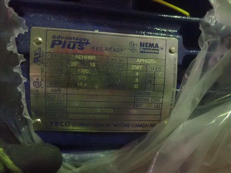 (2) Teco Westinghouse electric motors, 20 hp NEW (Tag 8107 Loc WH Modified)