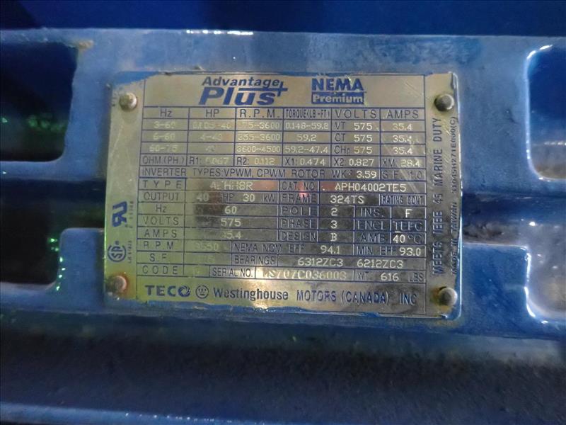 Teco Westinghouse electric motor, 40 hp (Tag 8427 Loc WH Modified)