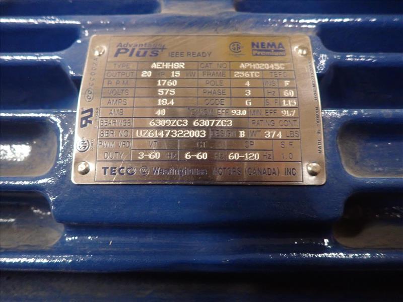 Teco Westinghouse electric motor, 20 hp (Tag 7874 Loc WH South)