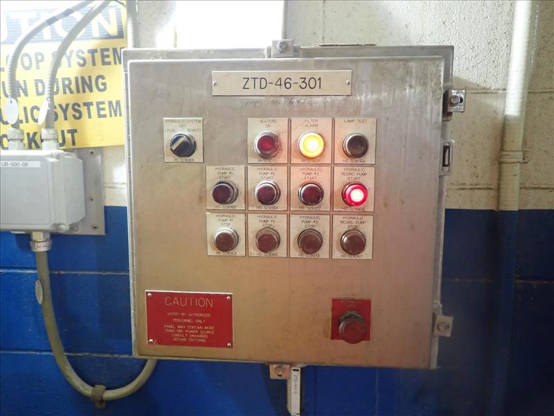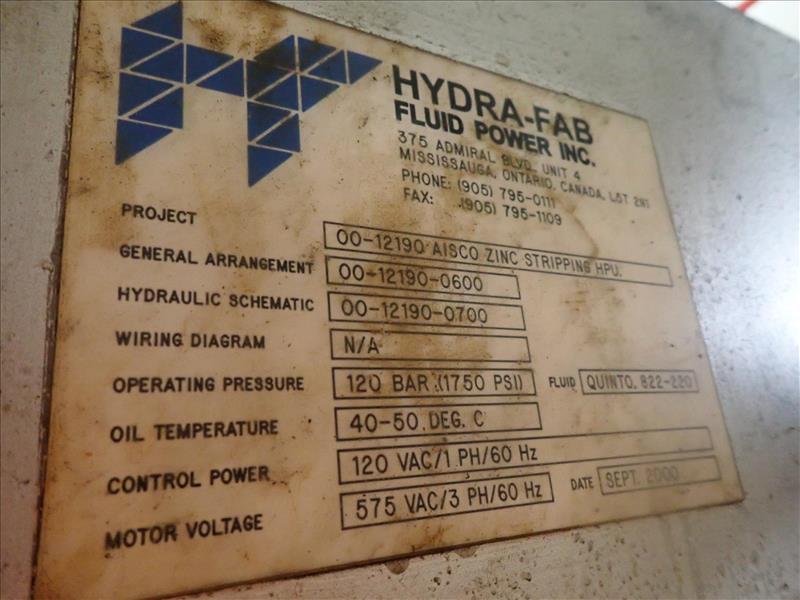 Hydra-Fab/AISCO hydraulic pack, proj. 00-12190, ser. no. 00-12190-0600 w/ (3) 50 hp motors (Tag 7693 Loc Cell House)