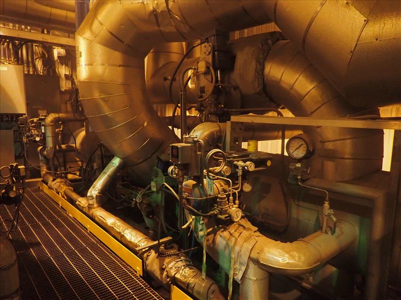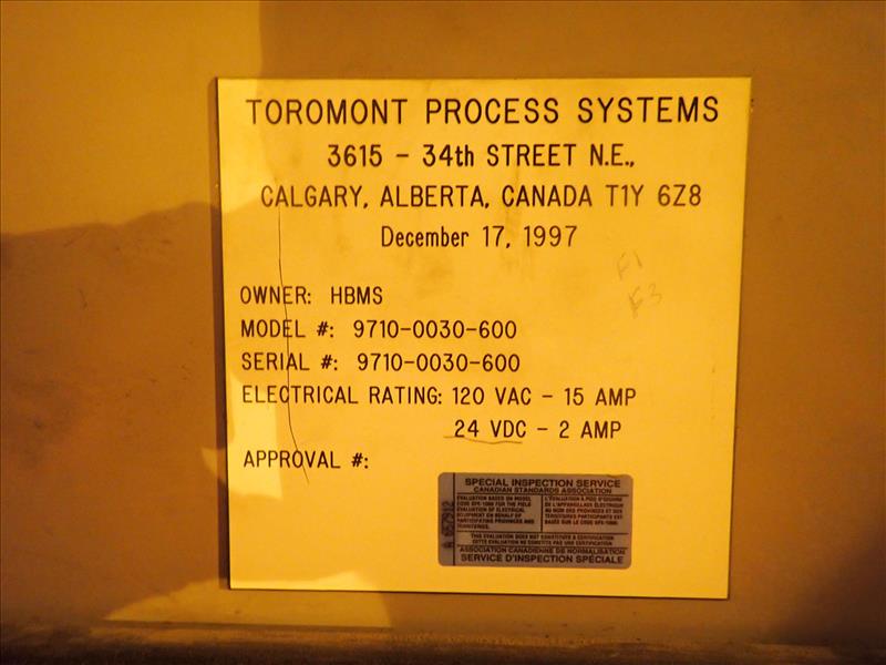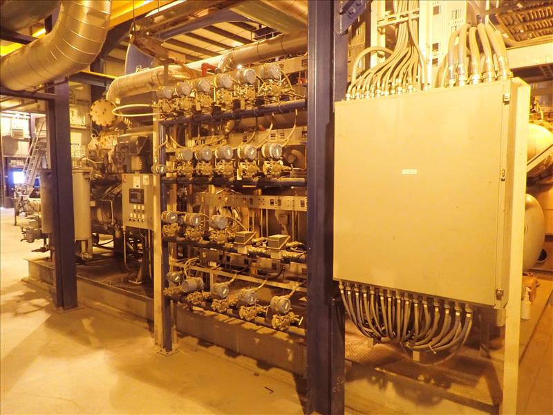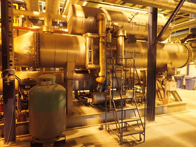 Toromont/Frick refrigeration unit, mod. 9710-0030-600, skid-mounted w/ control panels, flow meters and related pipes and valves (Tag 7005 Loc Oxygen Plant)