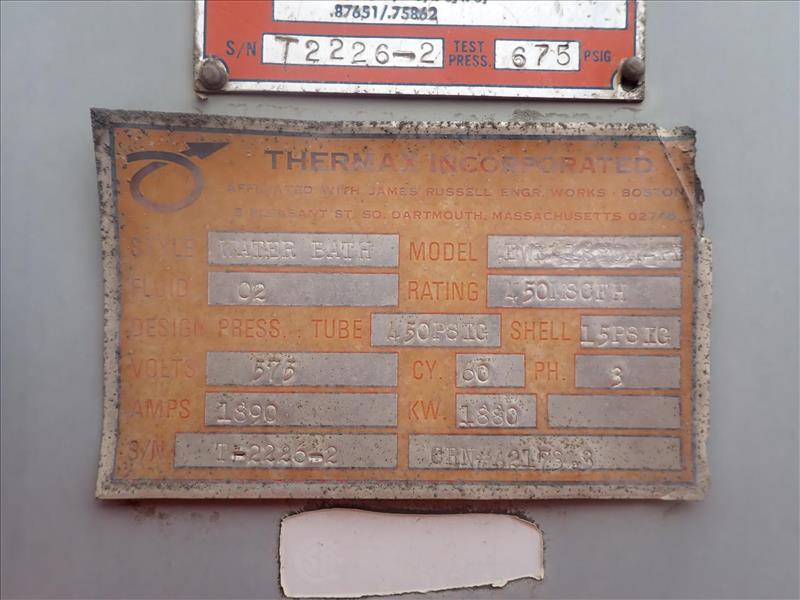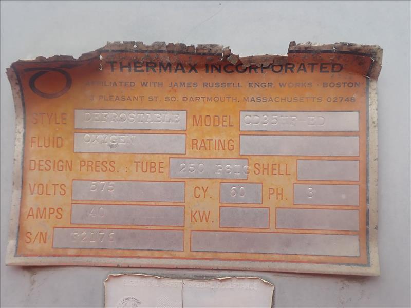 Thermax vaporizer, incl.: Water Bath, mod. EWB-1880H-PP, ser. no. T-2226-2; Defrostable unit, mod. CD35HF-ED, ser. no. F2176 (Tag 7013 Loc Oxygen Plant)