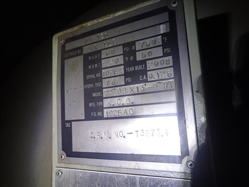 Kansas City deaerator, mod. 72 in. OD x 13 ft. - 0 in. T/T, ser. no. 1071-2, CRN T3873.4 (Tag 7043 Loc Power House)