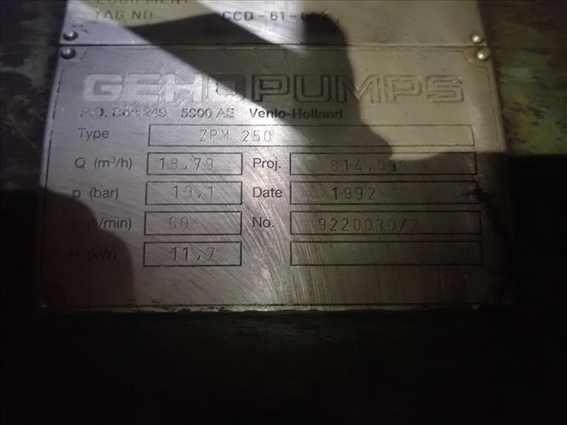Geho high-pressure piston diaphragm pump, mod. ZPM 250, ser. no. 9220030/2, 30 hp (Tag 7221 Loc ZPL Plant)