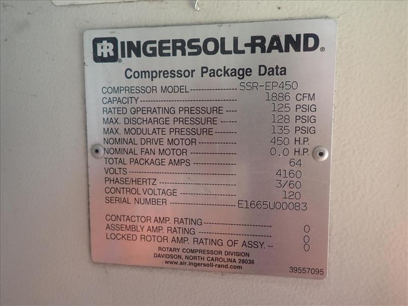 Ingersoll Rand air compressor, mod.SSR-EP450, ser. no. E1665U00083, 450 hp, 1886 cfm (Tag 7745 Loc 777/Hoist House)