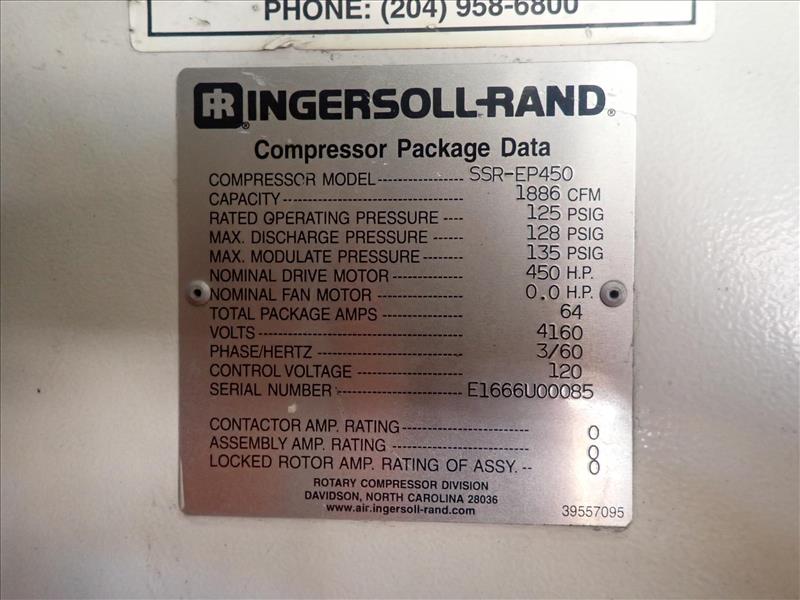 Ingersoll Rand air compressor, mod.SSR-EP450, ser. no. E1665U00085, 450 hp, 1886 cfm (Tag 7747 Loc 777/Hoist House)
