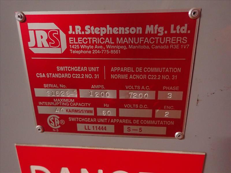 JRS switchgear, 7200 V, 1200 A, 60 Hz, 3 Ph (no. 31) (Tag 7123 Loc Central Sub Stn)