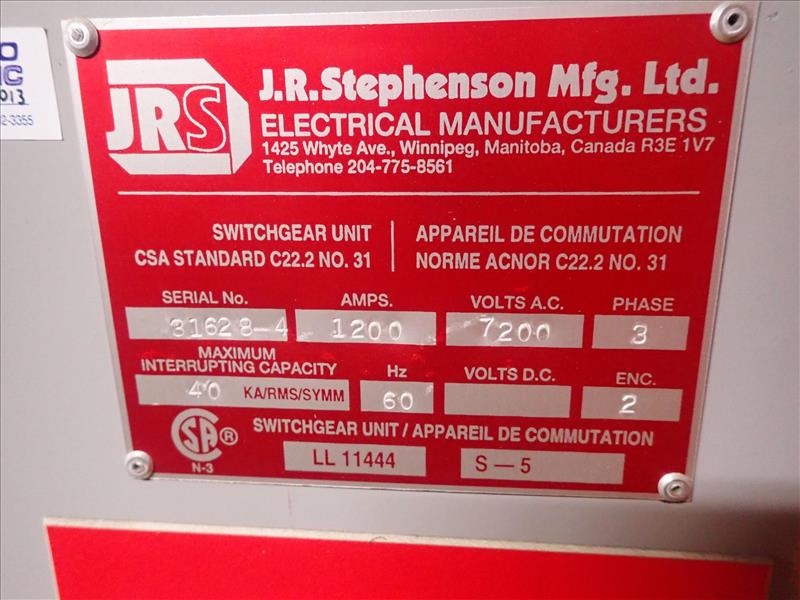 JRS switchgear, 7200 V, 1200 A, 60 Hz, 3 Ph (no. 20) (Tag 7124 Loc Central Sub Stn)