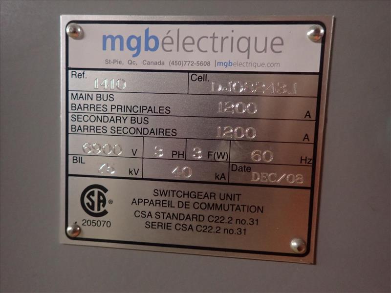 MGB breaker panel, 6900 V, 1200 A, 60 Hz, 3 Ph, 75 kv (Tag 7137 Loc Central Sub Stn)