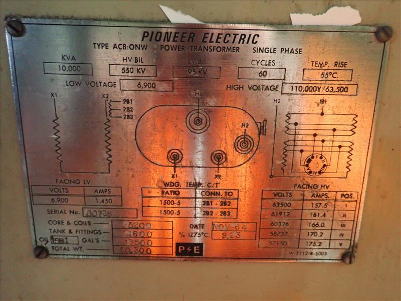 Federal Pioneer water-cooled transformer, 10000 KVA, 6900 V, 1450 A (Tag 7147 Loc Central Sub Stn)