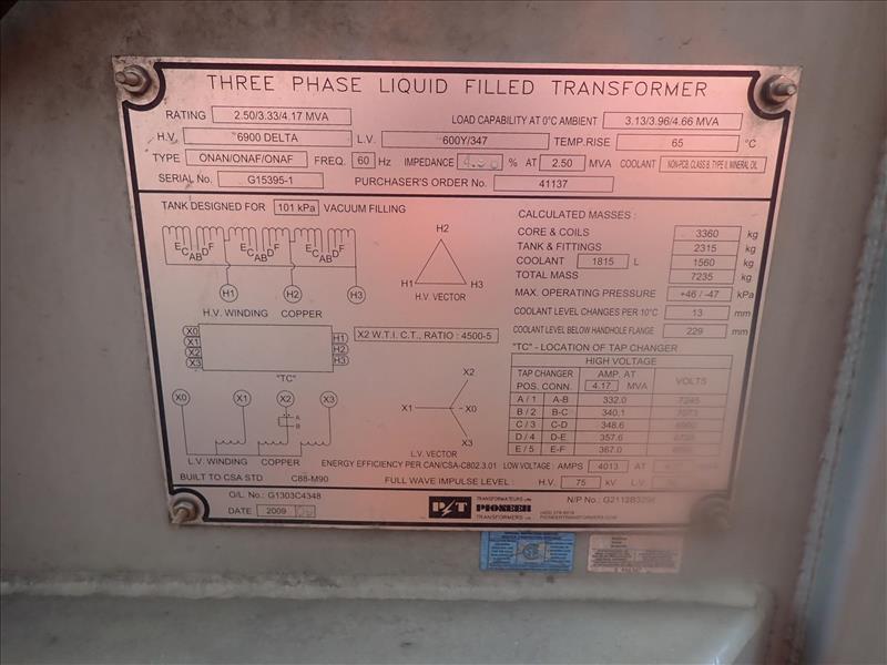 Pioneer transformer, 600V (Tag 7724 Loc Filter Facility Sub Stn)