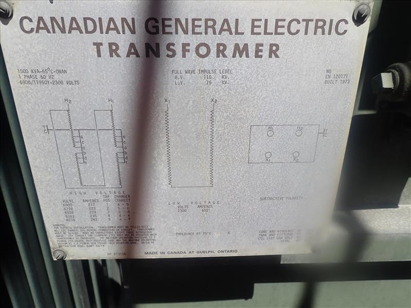 GE transformer, 1500 KVA (Tag 7712 Loc Mill Sub Stn)