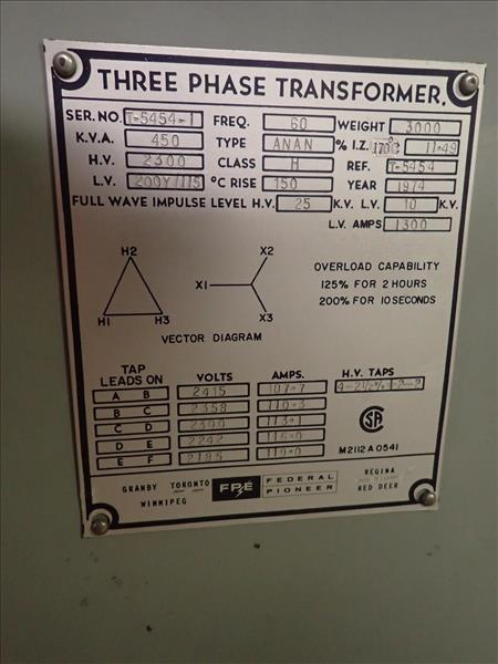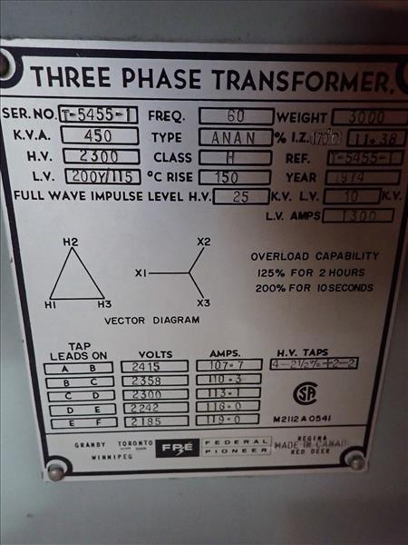 Federal Pioneer rectifier (AC to DC converter) w/ (2) 450 KVA transformers (Tag 7103 Loc North End Sub Stn)